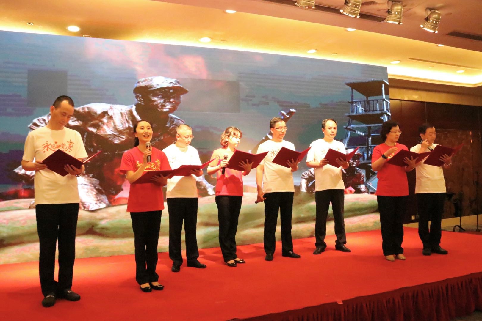 歌詠會上,黨員同志們演繹了小組唱《“歌”唱祖國”》、詩朗誦《永遠跟黨走》、《百年贊歌》、女生獨唱《南泥灣》等9個紅色經典作品,以歌詠志、以曲抒懷,在歌聲中回顧黨的百年輝煌歷史,歌頌黨的豐功偉績,表達對黨的熱愛之情,全面展示了黨員的精神風貌,會場氣氛熱烈,高潮迭起。